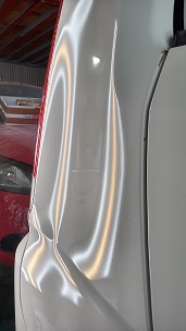 ●塗装前提修理時 ハンマリングで高い箇所 を均し低い箇所はEasy Glueで引上げるを繰返す ※パテ作業を極力省く為 に役立ててください。 (画像のような凹み時) スプレーパテで収まる 程度までに修復するの がベストです。 |