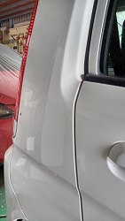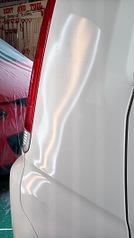 ※損傷確認 ➀左右に大きなヘコミ ②エッジ箇所鋭角折れ 裏パネル変形 ③エッジ箇所塗膜剥離 につき塗装 ◎メリット パテ処理範囲縮小 塗装範囲縮小 |
